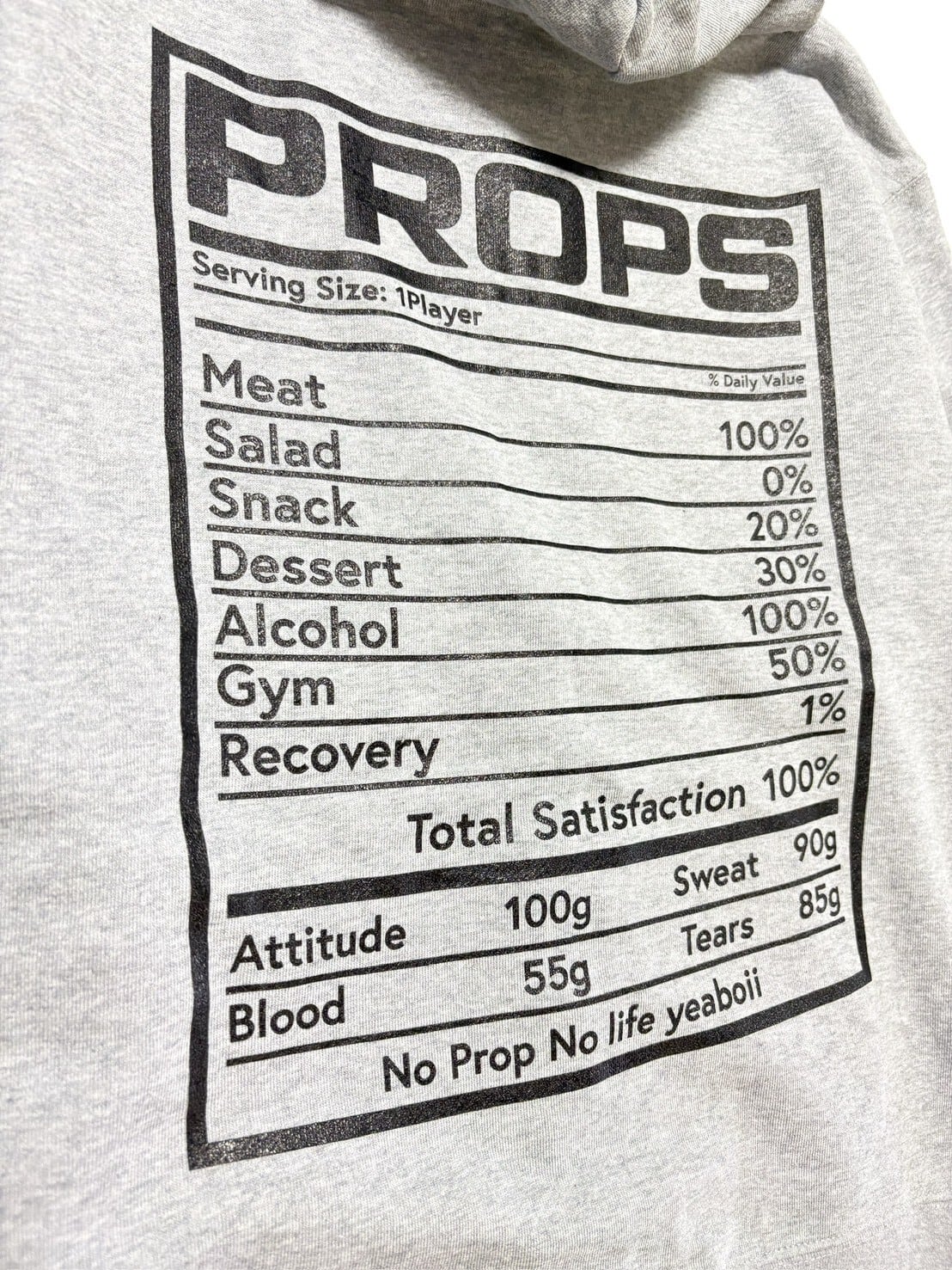 「No Prop No life」 = 「プロップがいなければ、人生はない。」
