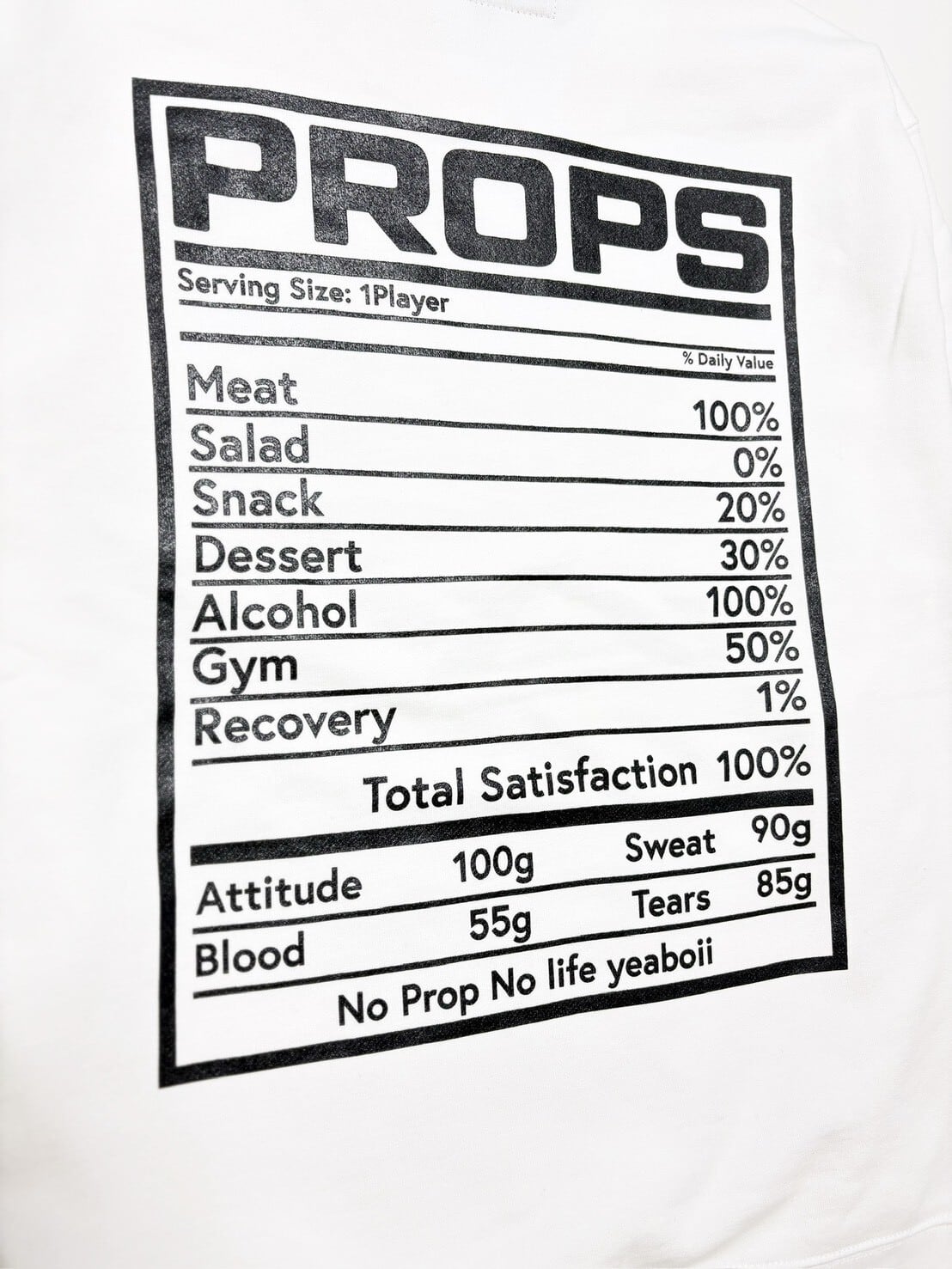 「No Prop No life」 = 「プロップがいなければ、人生はない。」