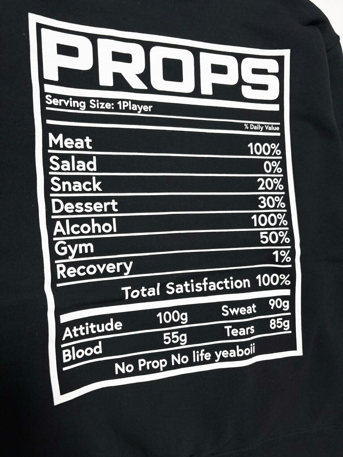 「No Prop No life」 = 「プロップがいなければ、人生はない。」
